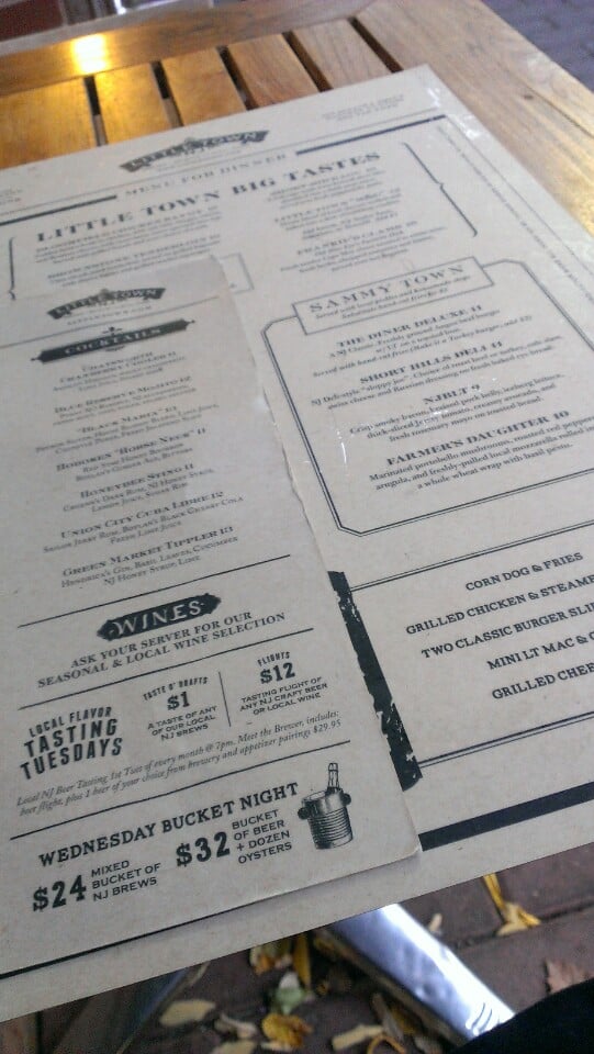“ I've been here enough times now to write a solid and fair review. I will say 3.5 stars but definitely rounding up. I know that makes no sense, but go with it. I actually avoided Little Town for about 4 months after they opened based solely on the yelp reviews. I have been a bunch of times since and experiences have varied, but not too much. Here it is, plain and simple. It's a simple place, it isn't over the top, it is clean and has pretty good food. Is it Fig Tree food, no, is it Boa on the weekend, no. Is it trying to be either of those places, no. And thank god. Let it be what it wants to be, some place that has some NJ pride. If one thing Jersians have it's pride in our state and I think a restaurant that uses that as a theme is great. Anyway, the service here can be spotty. It can be stellar it can be...whomp whomp. I have had both and in between but it has never been to the point where I would walk out or hop on my high bar stool (a drunks equivalent to high horse) and complain to a manager. There is one bartender however who has such an attitude I avoid having her poor my drinks. The food is pretty good. The NJ BLT is excellent and the rice balls with PORK ROLL (I will continue this argument in every review, Pork Roll is the food, Taylor is a company, Cases also makes pork roll and so does Shop Rite but you don't call it Shop Rite Ham... anyway). The rice balls are the highlight of that menu good god are they amazing. The wings are actually damn good in a town that has surprisingly few great wing options. The burgers are average and the wrap with just eggplant and lettuce is disappointing, don't get it. It's lettuce with a sliver of eggplant. I will say this about the food, priding in NJ produce, etc. they should have some seasonal NJ dishes and a rotating menu instead of just a static menu. Change it up with the 4 seasons that NJ has, and I don't mean Frankie Valli. At night I was afraid to come here because of what I perceived may be a hardcore faux hawk bro crowd with girls in tiaras. Alas, the few times I've been here at night it is chill, and not filled with Pauly and his friends from Bayonne. They've had bands the last couple times, actual bands that play actual instruments not DJ Doucheymic. I like it here a lot and I'm not ashamed to admit it. I will drink NJ beer and eat NJ food until I puke and I'm proud of it. No Coors Lite on tap here and that is spectacular. ”